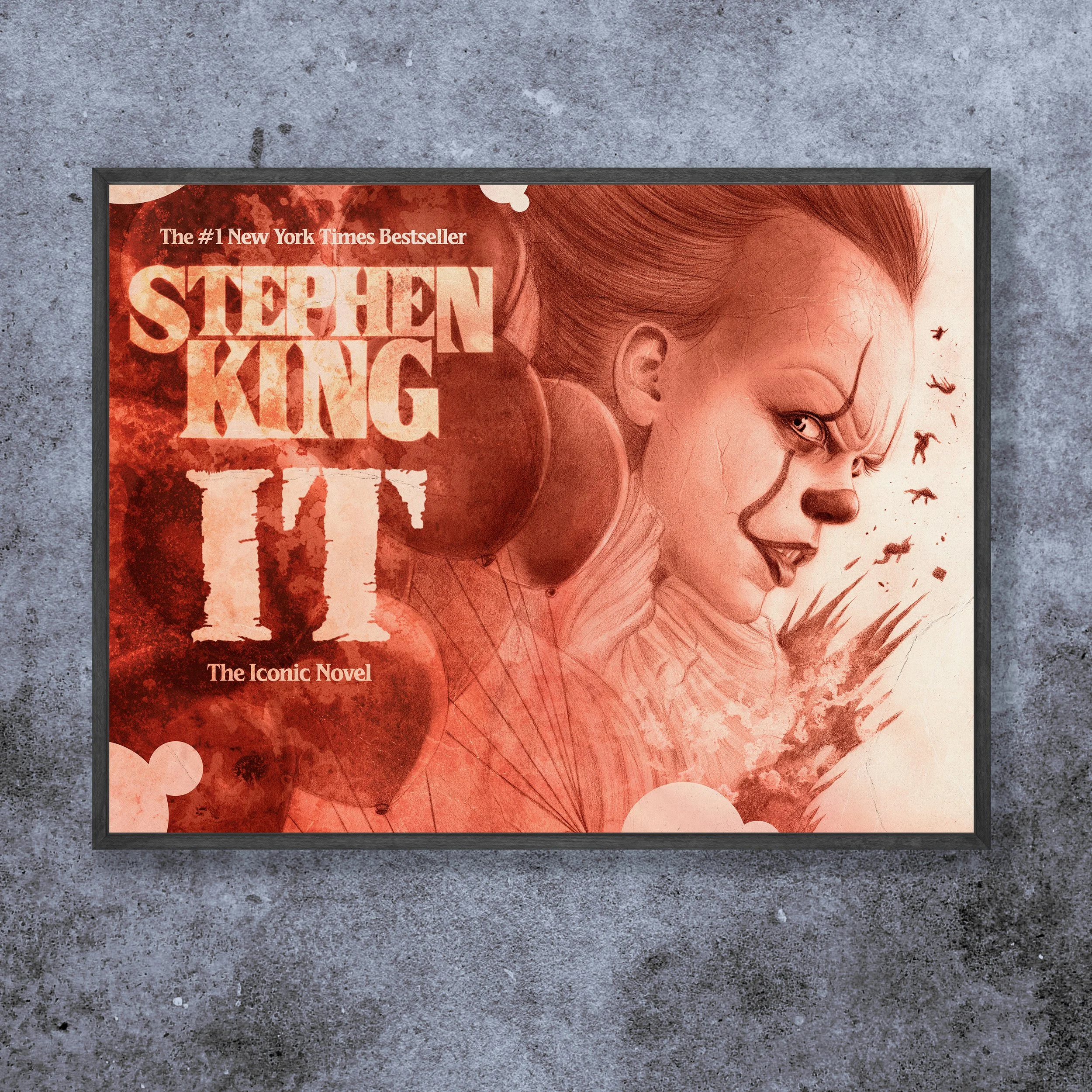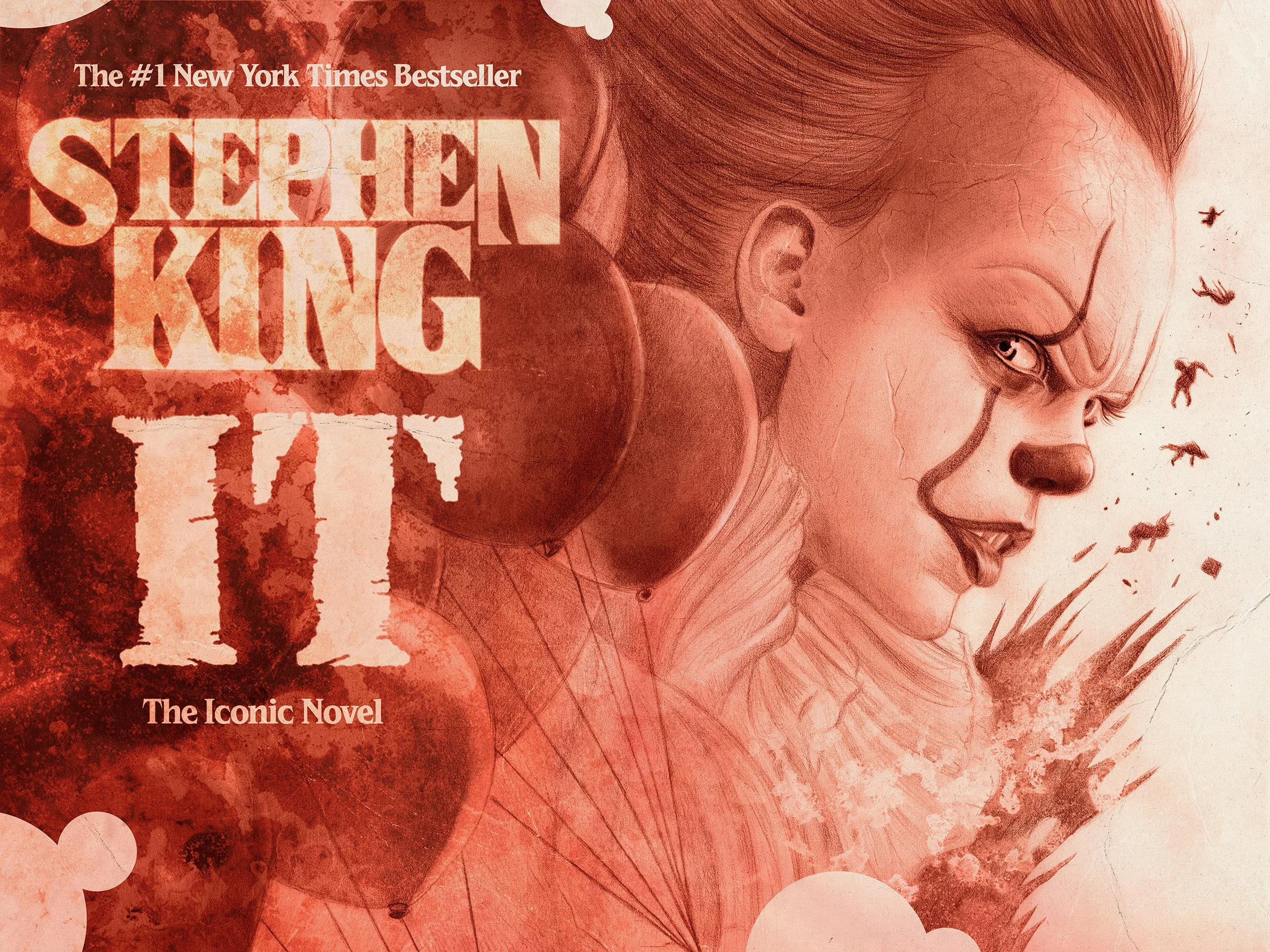 Poster and book cover design inspired by Stephen King’s 1986 novel It, as well as the 2017-2019 films. Portrait of Bill Skarsgård as Pennywise the Dancing Clown illustrated in graphite pencil with colors and graphics created in Adobe Photoshop and Illustrator.